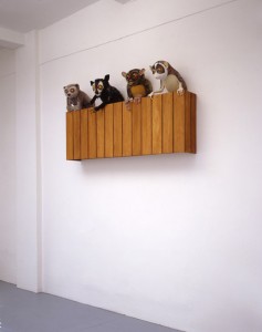 1996/97, Holzknetmasse, Fellimitat, Farbe, Gießharz, MDF, 108 x 190 x 38 cm