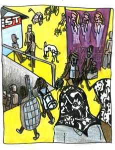 23,5 x 18,5 cm, Tinte, Buntstift, Aquarell auf Papier, 2010