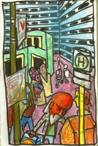 17,4 x 11 cm, Buntstift, Marker auf Papier, 2009