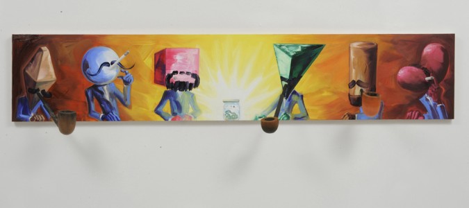 2010, Öl auf Holz & Holzknetmasse, 44 x 190 x 18 cm