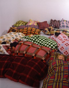 1992, Filzstreifen auf eingefärbtem Nessel, Gips, Farbe, Schlafsacklänge ca. 205 cm