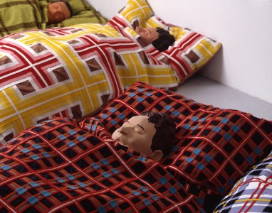 1992, Filzstreifen auf eingefärbtem Nessel, Gips, Farbe, Schlafsacklänge ca. 205 cm