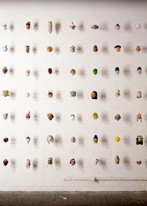 1990/91, Holzknetmasse, Acrylfarbe, Metallstäbe, je Kopf ca. 12,5 x 12,5 x 12,5 cm